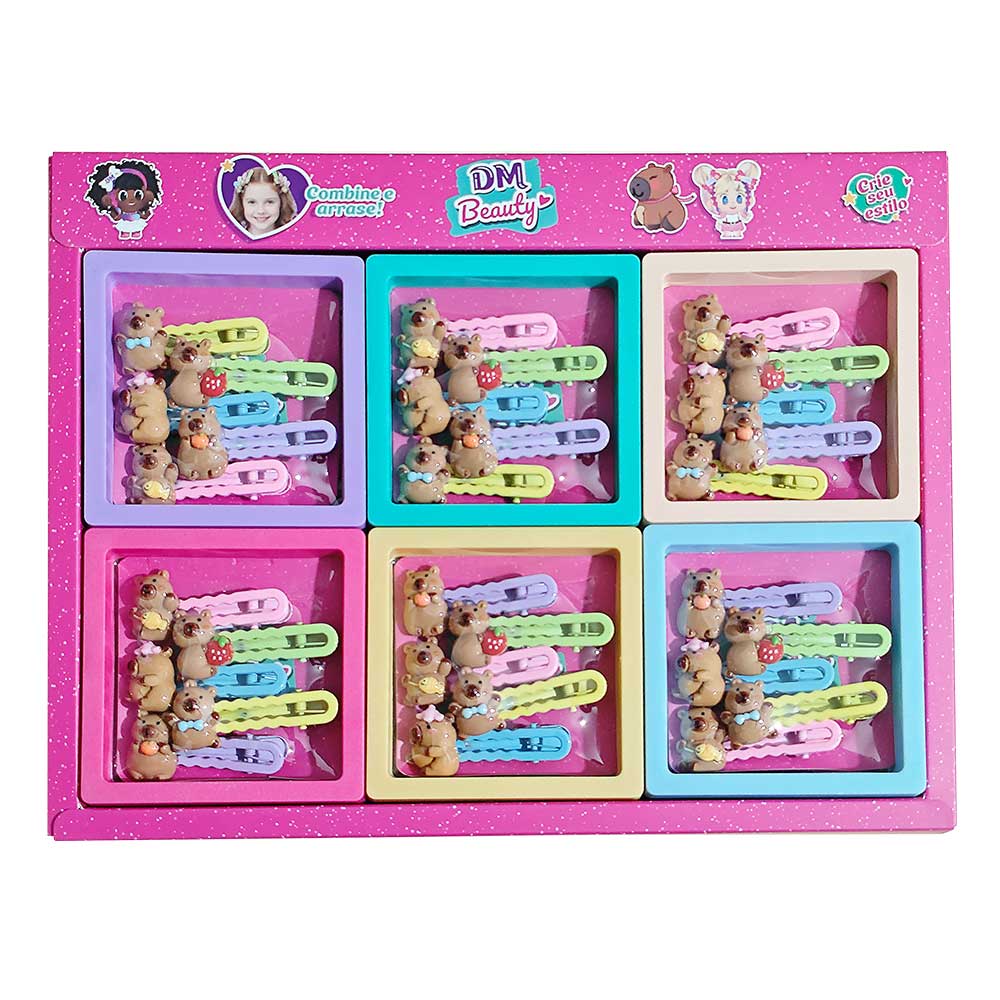 O Kit com 5 Presilhas Capivara é cheio de fofura e estilo! Com designs divertidos, elas são perfeitas para enfeitar os cabelos e deixar qualquer visual mais alegre.