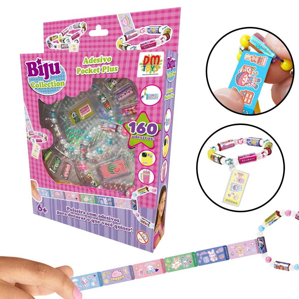 A linha Biju Collection é linda! Com Adesivo Pocket monte uma pulseira com rolos de adesivos que podem decorar o que você quiser! São 70 adesivos e inúmeras possibilidades!