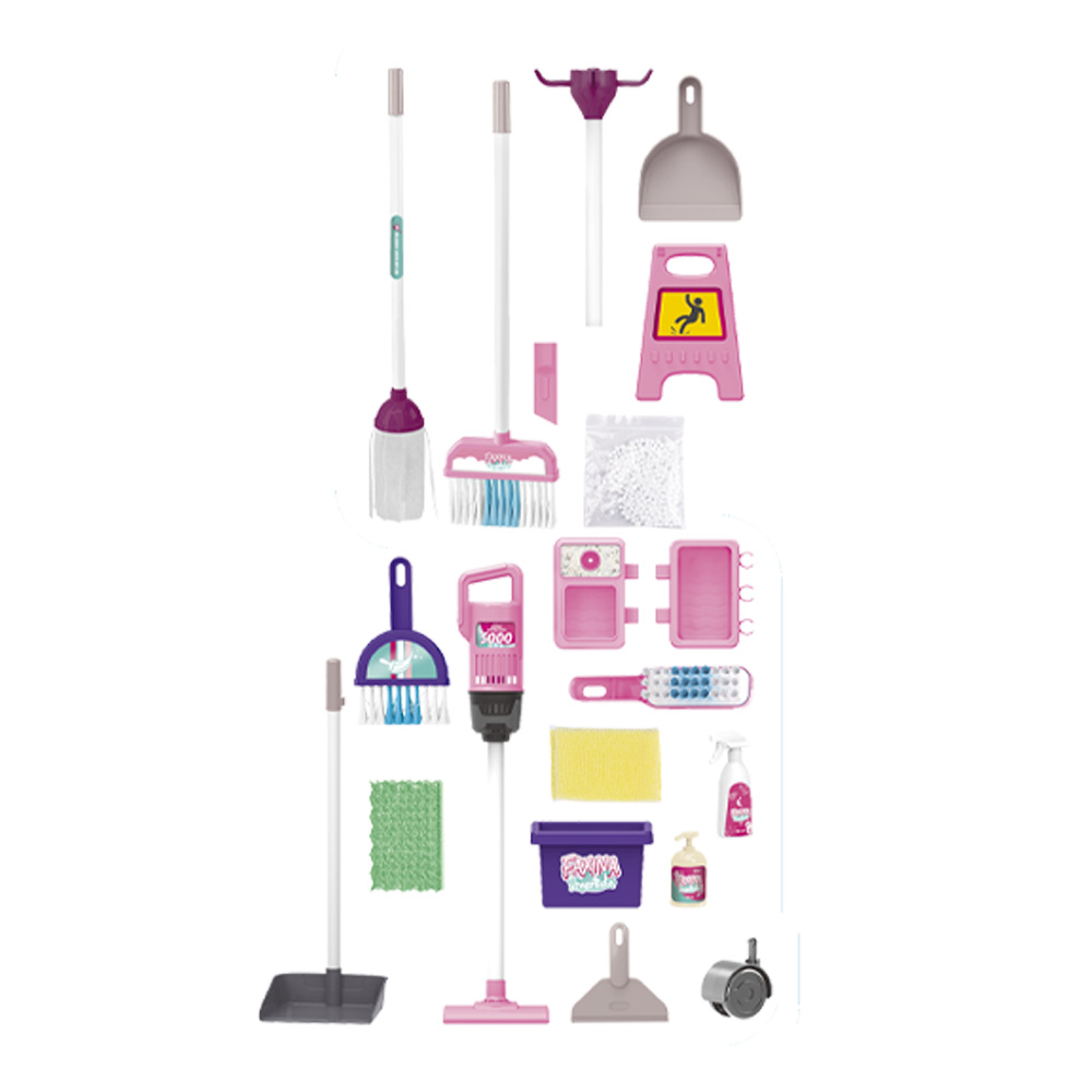Kit Faxina Divertida – Carrinho com Acessórios Um carrinho de limpeza completo para quem adora ajudar em casa! Este kit traz diversos acessórios como vassoura, rodo e pá, além de um incrível aspirador de pó que funciona de verdade. O carrinho possui rodinhas e compartimentos para guardar tudo depois da brincadeira. Estimula a organização e a imaginação. Indicado para maiores de 3 anos.