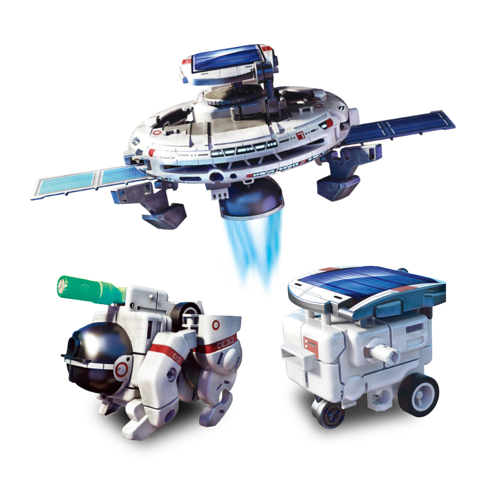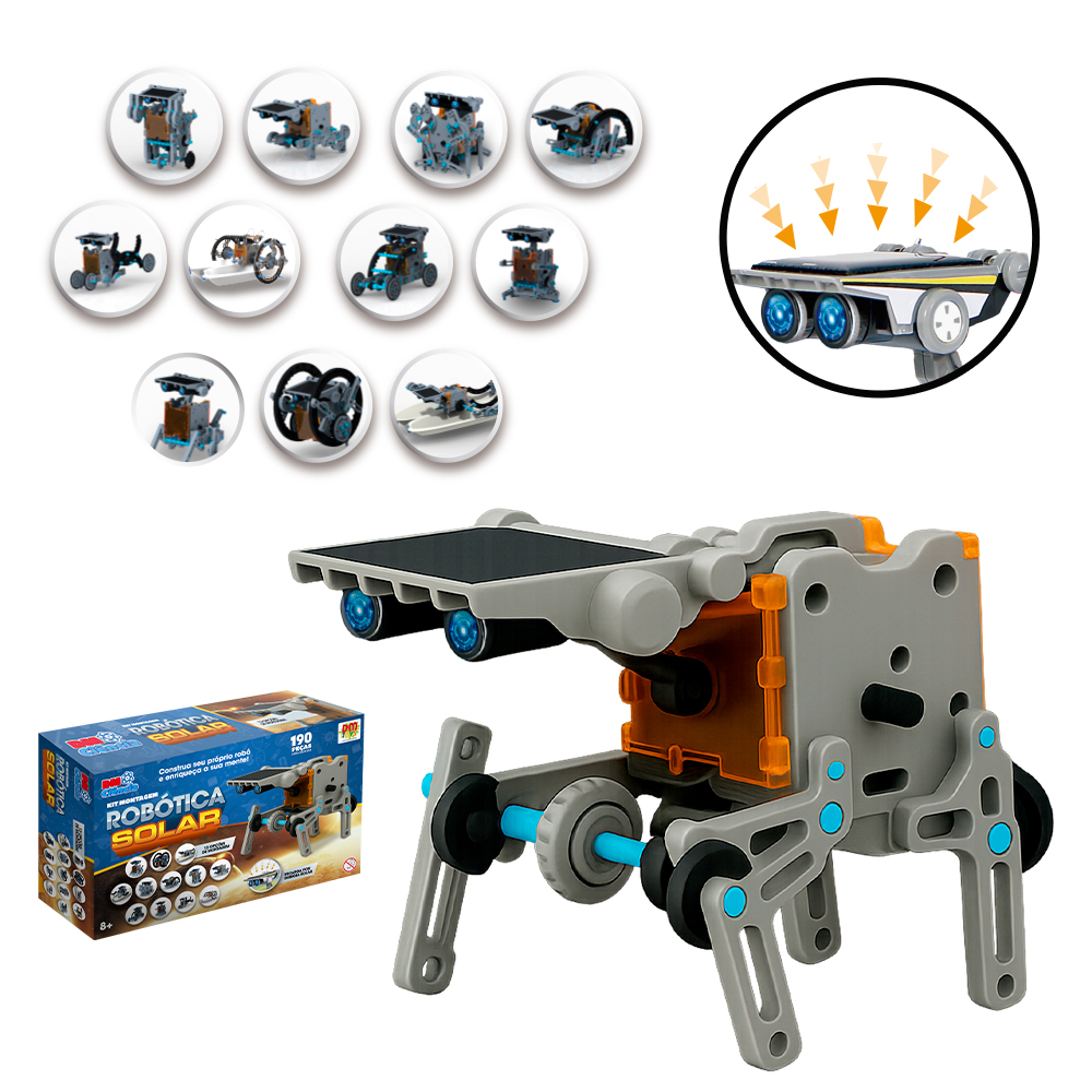 Desperte o cientista que existe dentro de você com o Kit Montagem Robô Espacial Solar! Este kit de montagem 6 em 1 é a porta de entrada perfeita para o mundo da robótica e das energias renováveis. Com peças modulares, a criança pode construir diferentes modelos espaciais que se movem de verdade, utilizando apenas a energia do sol ou pilhas.