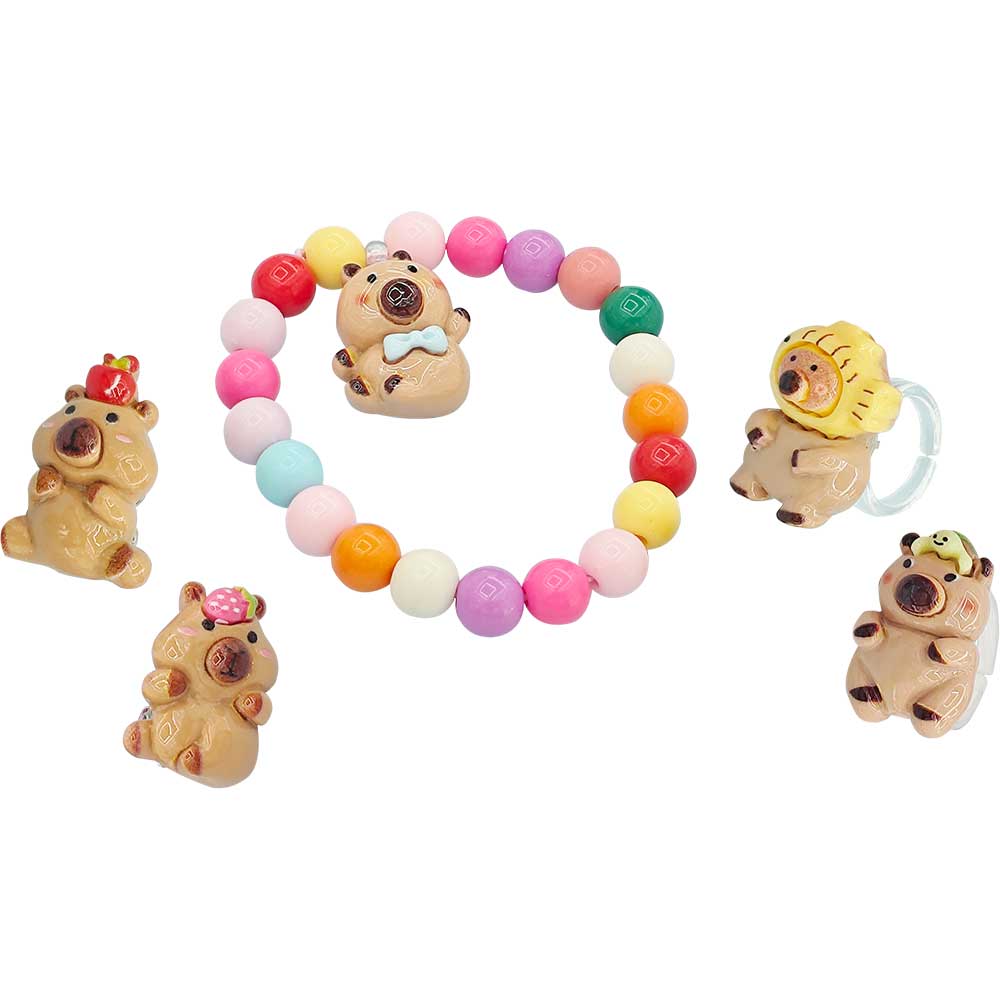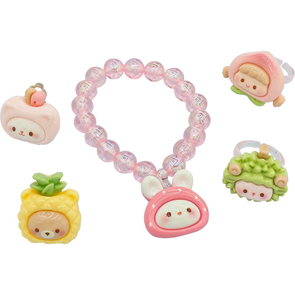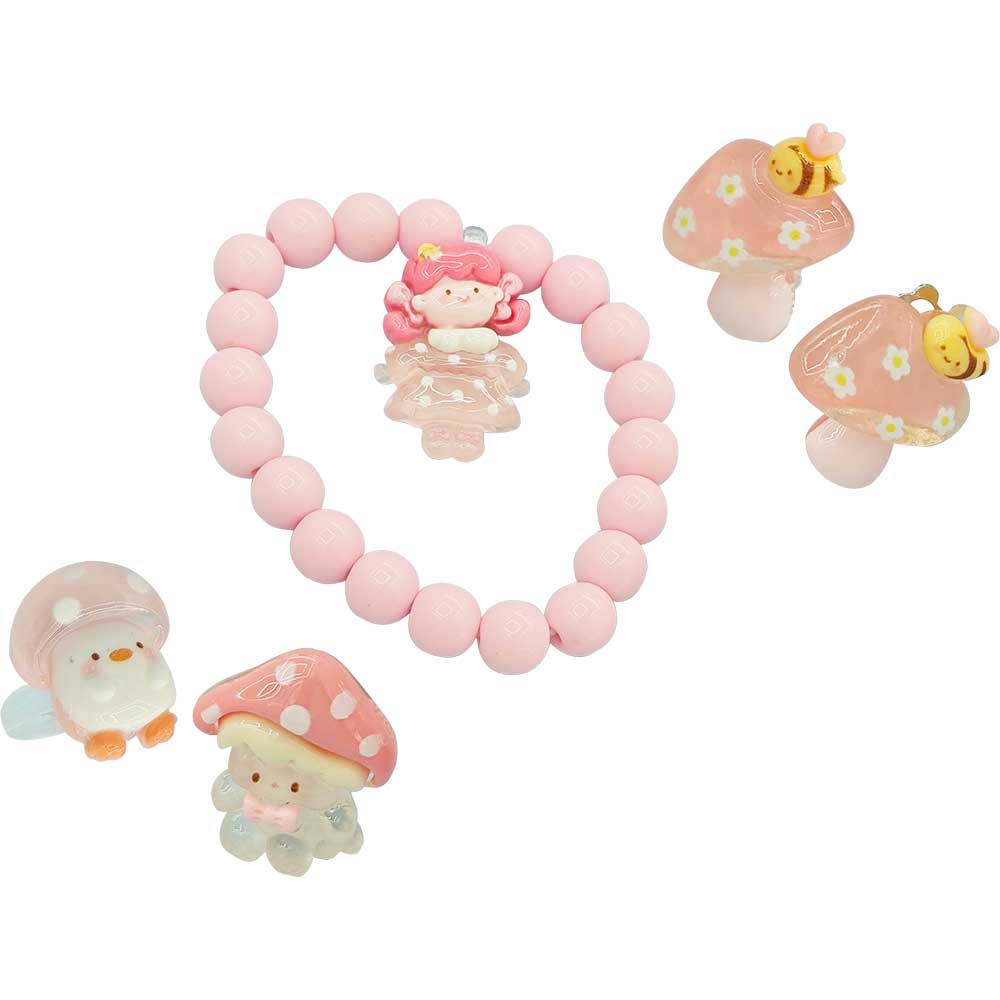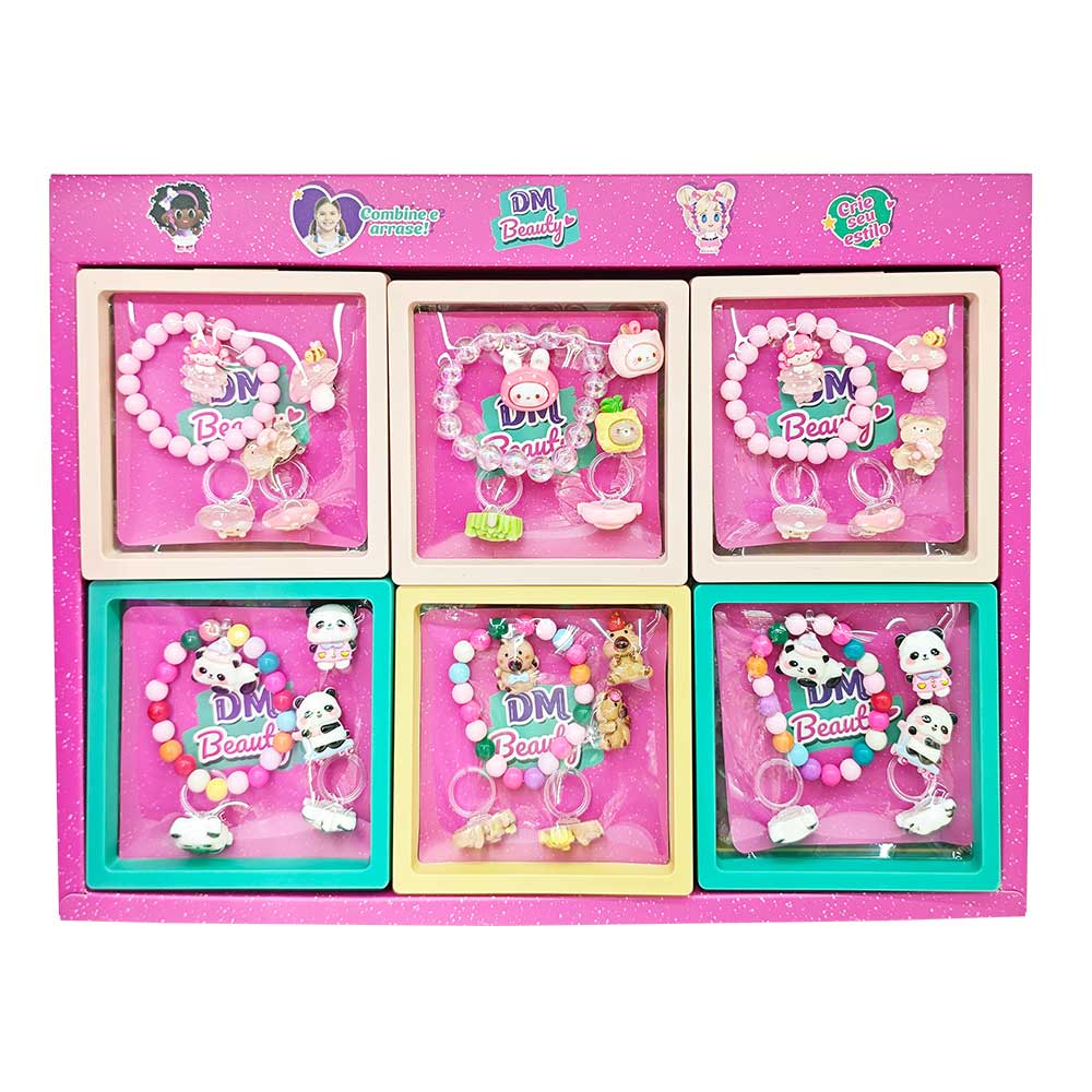 O Kit Pulseira, Brinco e Anel é perfeito para deixar a brincadeira ainda mais estilosa! Com acessórios encantadores, ele completa o visual com muito charme e diversão.