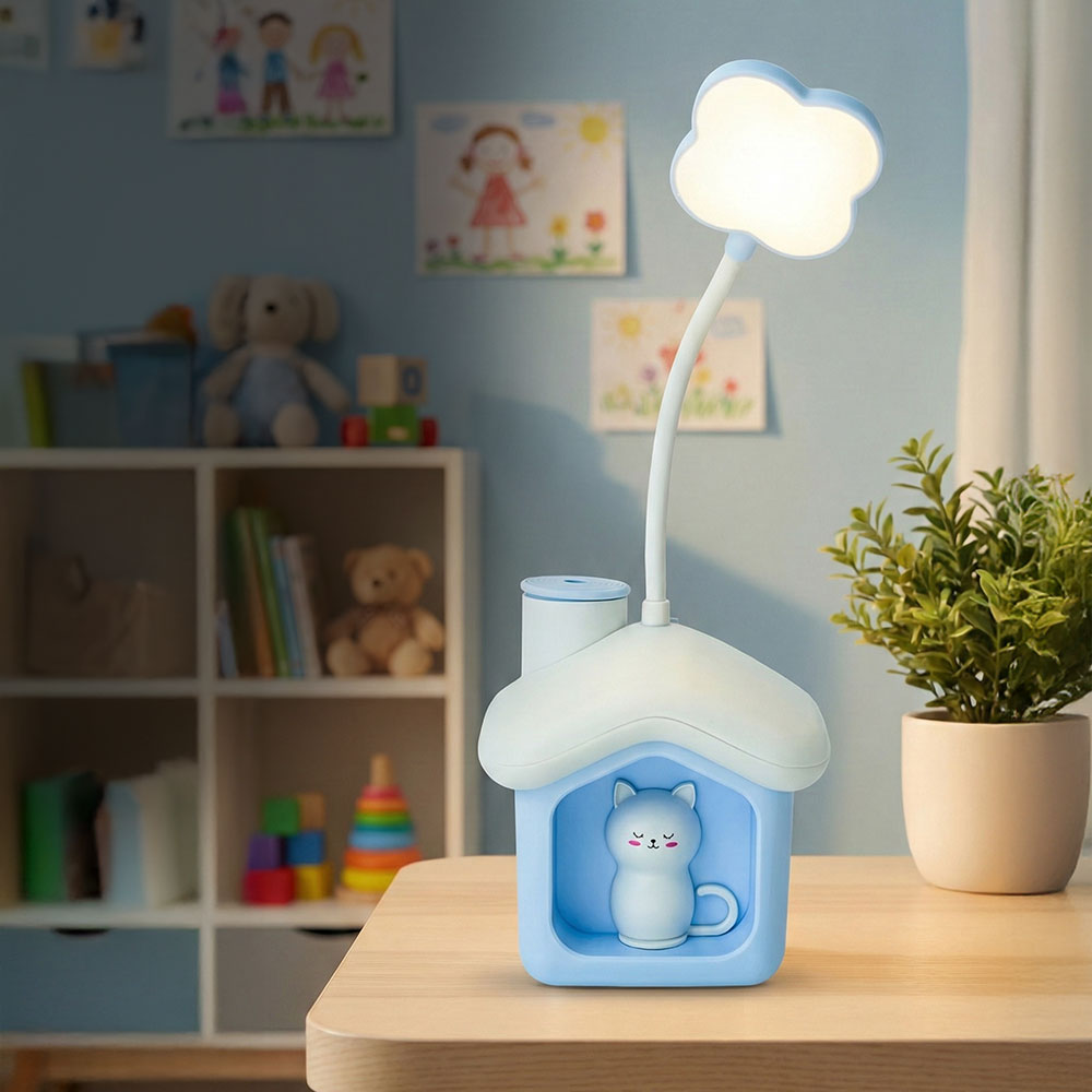 Esta super luminária, disponível em 2 modelos, também é um cofrinho e conta com um apontador de lápis. Possui iluminação agradável, é recarregável e conta com haste flexível para ajustar o foco da luz com facilidade.