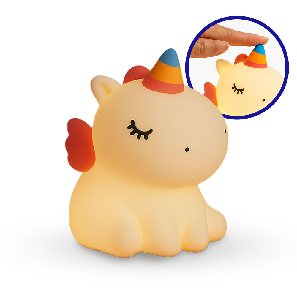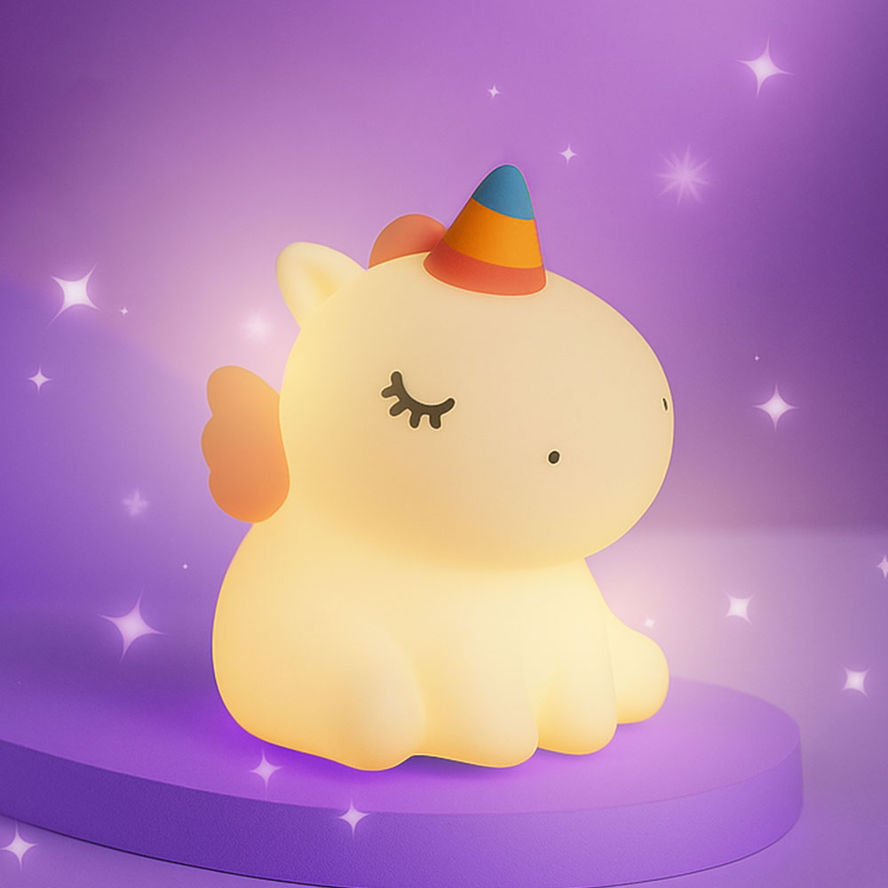 Ilumine o ambiente com charme e suavidade! A Luminária Noturna Unicórnio DM GO! possui luz em 7 cores, toque macio e brilho aconchegante, perfeita para decorar e acompanhar a hora do sono com segurança e fofura.