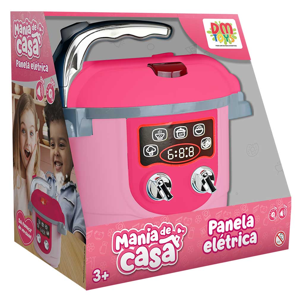A Mania de Casa Panela Elétrica vai deixar a brincadeira de cozinhar muito mais real! Ela tem som, luz e, com um pouquinho de água, solta vapor de verdade. É diversão garantida para os pequenos chefs que adoram inventar delícias na cozinha!