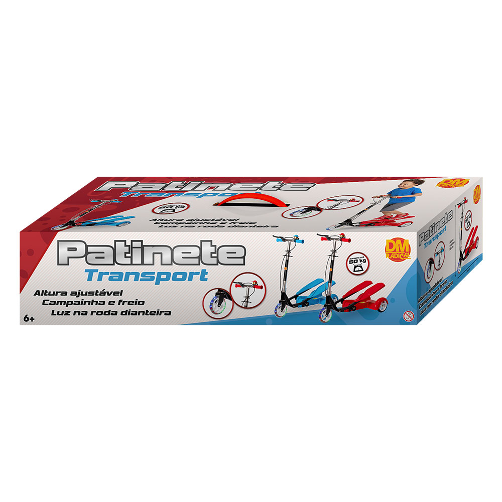 O Patinete Transport DM Radical oferece diversão e mobilidade com segurança. Com altura ajustável, ele acompanha o crescimento da criança e proporciona maior conforto durante o uso. Possui campainha, sistema de freio traseiro e luz na roda dianteira, garantindo visual moderno e mais visibilidade durante as brincadeiras. Suporta até 50 kg e é indicado para crianças a partir de 6 anos, sendo uma ótima opção para atividades ao ar livre.