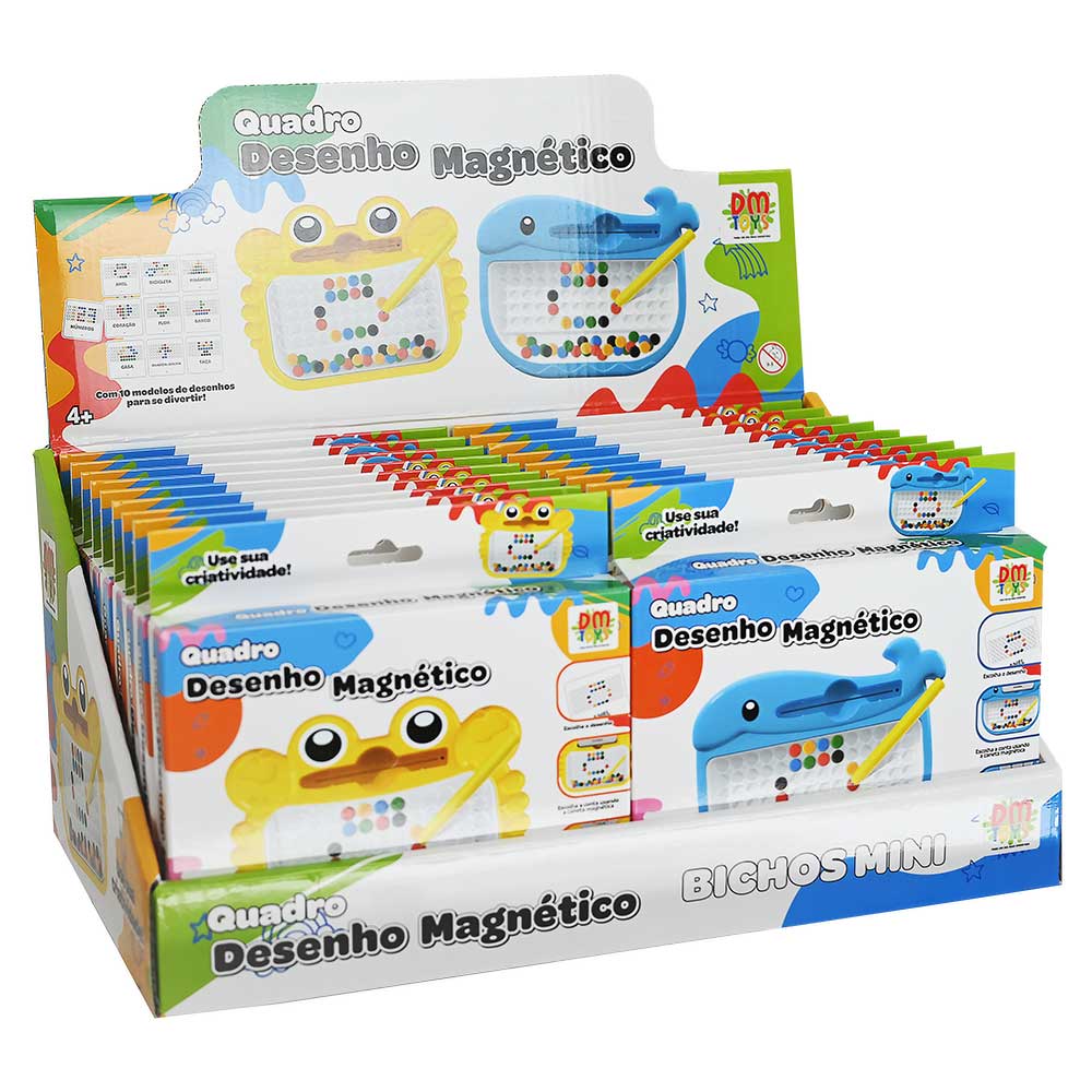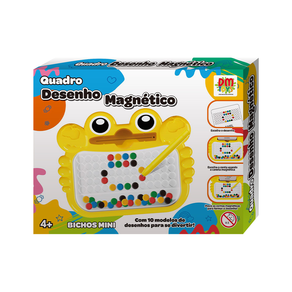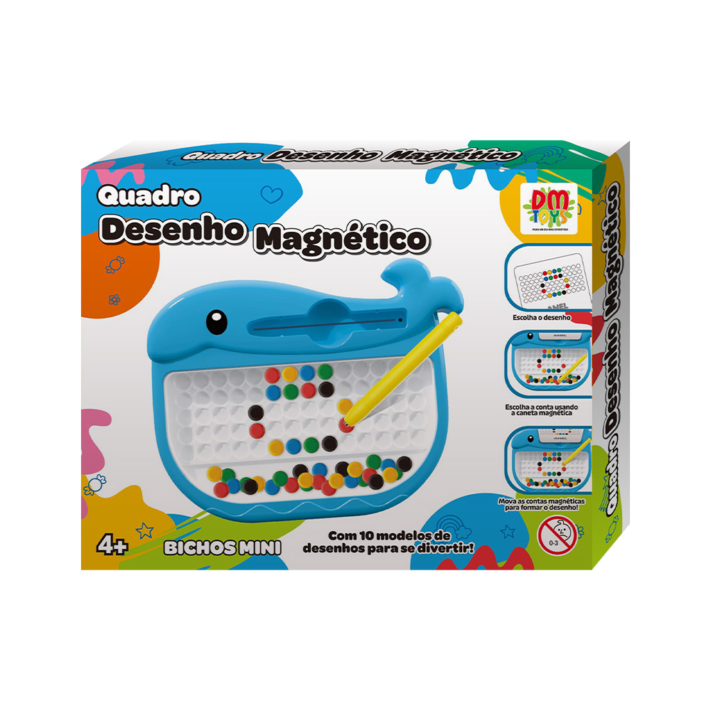 O Quadro Desenho Magnético Bichos é super divertido, ele tem imãs coloridos e caneta magnética. Você pode fazer vários desenhos, quando terminar é só virar o quadro para começar novamente! Ele vem com cards com modelos de desenhos para se divertir! Use sua criatividade! Vem sortido em 2 modelos: baleia e caranguejo